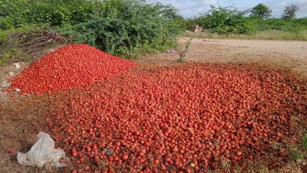 ಟೊಮೆಟೋ ಖರೀದಿಸಿ ಬೆಂಗಳೂರು ಎಪಿಎಂಸಿ ಮಾರುಕಟ್ಟೆಗೆ ಕೊಂಡೊಯ್ಯುತ್ತಿರುವಾಗ ಬೆಲೆ ಕುಸಿತದ ಸುದ್ದಿ ಕೇಳಿ ಚಿತ್ರದುರ್ಗ ಹಿರಿಯೂರು ತಾಲೂಕಿನ ಹರ್ತಿಕೋಟೆ ಗ್ರಾಮದ ಬಳಿ ರಾಷ್ಟ್ರೀಯ ಹೆದ್ದಾರಿ 13ರ ರಸ್ತೆ ಬದಿಯಲ್ಲಿ ನೂರಾರು ಕ್ರೆಟ್ ಟೊಮೆಟೋವನ್ನು ಸುರಿದು ಹೋಗಿರುವ ಘಟನೆ ನಡೆದಿದೆ.