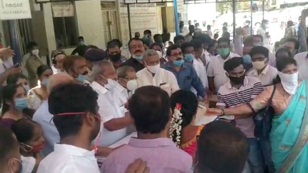 ಸಚಿವ ಭೈರತಿ ಬಸವರಾಜ್ ಮಹಾನಗರ ಪಾಲಿಕೆಗೆ ಆಗಮಿಸುತ್ತಿದ್ದಂತೆ ನೂರಾರು ಜನರು ಒಮ್ಮೆಲೆ ಜಮಾವಣೆಗೊಂಡರು. ಈ ವೇಳೆ ನೂಕುನುಗ್ಗಲು ಏರ್ಪಟ್ಟಿತು. ಆದರೆ ಅಧಿಕಾರಿಗಳು ಜನರಲ್ಲಿ ಸಾಮಾಜಿಕ ಅಂತರ ಕಾಯ್ದುಗೊಳ್ಳುವಂತೆ ಮನವಿ ಮಾಡಿದರೂ ಸಹ ಯಾವುದೇ ಪ್ರಯೋಜನವಾಗಲಿಲ್ಲ.