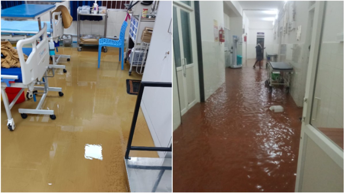 ತಡ ರಾತ್ರಿ ಧಾರಾಕಾರ ಸುರಿದ ಮಳೆಗೆ ಚರಂಡಿ ನೀರು ಸಮೇತ ಆಸ್ಪತ್ರೆಗೆ ನುಗ್ಗಿದೆ. ಇದರಿಂದಾಗಿ ನಿದ್ದೆಗೆಟ್ಟು ಸಿಬ್ಬಂದಿ ಆಸ್ಪತ್ರೆ ಸ್ವಚ್ಚತಾ ಕಾರ್ಯಕ್ಕೆ ಇಳಿದಿರುವ ದೃಶ್ಯಗಳು ಕಂಡು ಬಂದಿವೆ. ಚರಂಡಿ ವ್ಯವಸ್ಥೆ ಸರಿಯಾಗಿಲ್ಲದ ಕ್ರೀಡಾಂಗಣದಿಂದ ಆಸ್ಪತ್ರೆಗೆ ನೀರು ನುಗ್ಗಿದೆ ಎಂದು ಆರೋಪಿಸಲಾಗುತ್ತಿದೆ.