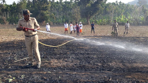 ಮೆಕ್ಕೆಜೋಳ ಕಟಾವು ಮಾಡಿ ಉಳಿದ ಒಣ ದಂಟುಗಳಿಗೆ ಬೆಂಕಿ ಆವರಿಸಿದೆ. ಗಾಳಿಯಿಂದ ಒಂದು ಕಡೆಯಿಂದ ಮತ್ತೊಂದು ಕಡೆಗೆ ಬೆಂಕಿ ವ್ಯಾಪಿಸಿದೆ. ಅದೃಷ್ಟವಶಾತ್ ಯಾವುದೇ ಪ್ರಾಣಾಪಾಯ ಸಂಭವಿಸಿಲ್ಲ.