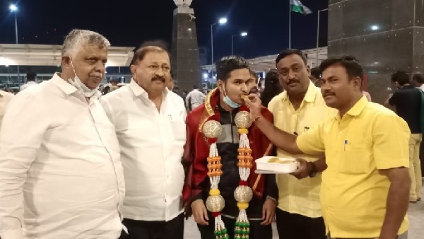 ಬುಧವಾರ ರಾತ್ರಿ ಬೆಂಗಳೂರು ವಿಮಾನ ನಿಲ್ದಾಣಕ್ಕೆ ಆಗಮಿಸಿದ ಆದರ್ಶ್ ಉಕ್ರೇನ್ ದೇಶದ ಖಾರ್ಕೀವ್ ನಗರದಲ್ಲಿ ಮೂರನೇ ವರ್ಷದ ಎಂಬಿಬಿಎಸ್ ವ್ಯಾಸಂಗ ಮಾಡುತ್ತಿದ್ದರು. ಜಗಳೂರು ತಾಲ್ಲೂಕಿನ ಸ್ವಚ್ಛ ಗ್ರಾಮದ ಸುಶೀಲಮ್ಮ ಮತ್ತು ಶಿವಮೂರ್ತಿ ಎಂಬುವರ ಪುತ್ರ. ಉಕ್ರೇನ್ನಿಂದ ಸುಕ್ಷಿತವಾಗಿ ವಾಪಸ್ ಆದ ಪುತ್ರನಿಗೆ ಸಿಹಿ ತಿನ್ನಿಸಿ ಪೋಷಕರು ಬರಮಾಡಿಕೊಂಡರು.