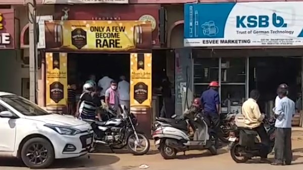 ಲಾಕ್ ಡೌನ್ ಘೋಷಣೆ; ಮದ್ಯ ಖರೀದಿಗೆ ಮುಗಿಬಿದ್ದ ಜನ!