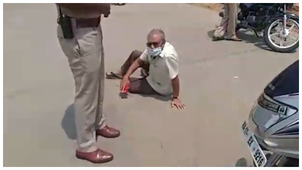 ದಂಡ ಹಾಕಿದ ದಾವಣಗೆರೆ ಪೊಲೀಸರು: ರಸ್ತೆಯಲ್ಲಿ ಪ್ರತಿಭಟಿಸಿದ ವೃದ್ಧ