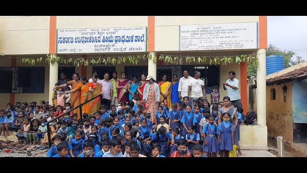 ಎರಡು ವರ್ಷಗಳಿಂದ ಶಾಲೆಗೆ ತೆರಳದೆ ಮನೆಯಲ್ಲೇ ಇದ್ದ 1-5ನೇ ತರಗತಿಯ ಮಕ್ಕಳು ಸೋಮವಾರ ಹುಮ್ಮಸ್ಸಿನಿಂದ ಶಾಲೆಗೆ ಆಗಮಿಸಿದ್ದರು. ಶಾಲೆಯ ಶಿಕ್ಷಕರು, ಸಿಬ್ಬಂದಿ ವರ್ಗ ಮತ್ತು ಎಸ್ಡಿಎಂಸಿ ಅಧ್ಯಕ್ಷ ಸಿದ್ದಾರ್ಥ್, ಉಪಾಧ್ಯಕ್ಷೆ ನಾಗವೇಣಿ ಹಾಗೂ ಸದಸ್ಯರು ಮಕ್ಕಳಿಗೆ ಹೂಮಳೆ ಸುರಿಸಿ, ಗುಲಾಬಿ ಹೂ, ಚಾಕಲೇಟ್ ನೀಡುವ ಮೂಲಕ ಸಂತೋಷದಿಂದ ಶಾಲೆಗೆ ಸ್ವಾಗತಿಸಿದರು.