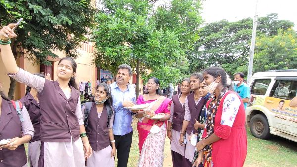 ಎಂ. ಪಿ. ರೇಣುಕಾಚಾರ್ಯ ಪತ್ನಿ ಸುಮಿತ್ರಾ ಸಹ ವಿದ್ಯಾರ್ಥಿಗಳ ಜೊತೆ ಭೋಜನ ಸವಿದರು. ಈ ಸಂದರ್ಭದಲ್ಲಿ ರೇಣುಕಾಚಾರ್ಯ ದಂಪತಿ ಜೊತೆ ಸೆಲ್ಫಿ ತೆಗೆದುಕೊಳ್ಳಲು ವಿದ್ಯಾರ್ಥಿನಿಯರು ಮುಗಿಬಿದ್ದರು. ಕೈಯಲ್ಲಿ ಊಟದ ತಟ್ಟೆ ಹಿಡಿದೇ ರೇಣುಕಾಚಾರ್ಯ ಸೆಲ್ಪಿಗೆ ಪೋಸ್ ಕೊಟ್ಟರು.