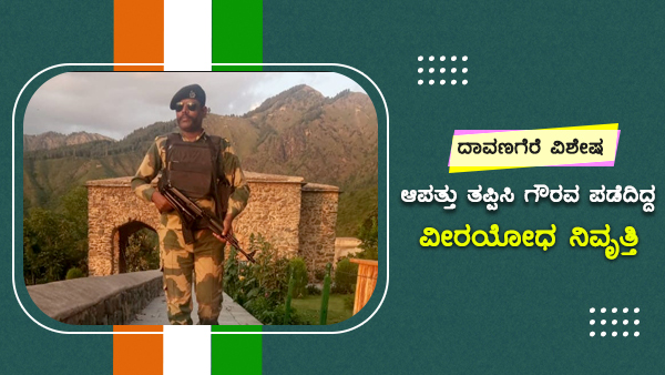 ದಾವಣಗೆರೆ, ಆಗಸ್ಟ್ 02; ಬರೋಬ್ಬರಿ 21 ವರ್ಷಗಳ ಕಾಲ ದೇಶಕ್ಕಾಗಿ ಸೇವೆ ಸಲ್ಲಿಸಿದ ಯೋಧ. ಪ್ರಾಣದ ಹಂಗು ತೊರೆದು ಕೆಲವು ಬಾರಿ ಆಪತ್ತು ತಪ್ಪಿಸಿದ ಮಹಾ ಚತುರ. ಪಾಕಿಸ್ತಾನದ ಇಬ್ಬರನ್ನು ಕೊಂದು ಅಪಾಯ ತಪ್ಪಿಸಿದ್ದ ಧೀರ. ನೆಲದಲ್ಲಿ ಹೂತಿಟ್ಟಿದ್ದ ಬಾಂಬ್ಗಳನ್ನು ಪತ್ತೆ ಹಚ್ಚಿ ಹೆಗ್ಗಳಿಕೆ ಪಡೆದಿದ್ದ ಸೈನಿಕ ದೇಶ ಸೇವೆಯಿಂದ ನಿವೃತ್ತರಾದರು.