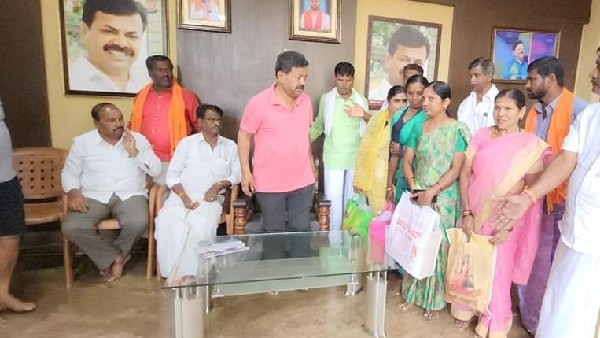 ಸಿಎಂ ರಾಜಕೀಯ ಕಾರ್ಯದರ್ಶಿ ಎಂ.ಪಿ.ರೇಣುಕಾಚಾರ್ಯರಿಗೆ ವಿವಿಧ ಗ್ರಾಮಗಳಿಂದ ಬಂದಿದ್ದ ಮಹಿಳೆಯರು ಊಟವನ್ನು ತಿನ್ನಿಸಿದರು. ಹೊನ್ನಾಳಿ ತಾಲೂಕಿನ ಮಾದೇಹಳ್ಳಿ ಗ್ರಾಮದ ಮಹಿಳೆಯರು ರೇಣುಕಾಚಾರ್ಯರ ನಿವಾಸಕ್ಕೆ ಆಗಮಿಸಿ, ಧೈರ್ಯ ತುಂಬುವ ಪ್ರಯತ್ನವನ್ನು ಮಾಡಿದರು. ಶಾಸಕರು ಹಾಗೂ ಕುಟುಂಬಸ್ಥರಿಗೆ ಸಾಂತ್ವನ ಹೇಳಿದ ವಿವಿಧ ಗ್ರಾಮದ ಮುಖಂಡರು ನಿಮ್ಮೊಂದಿಗೆ ನಾವಿದ್ದೇವೆ, ಸಮಾಧಾನ ಮಾಡಿಕೊಳ್ಳಿ ಎಂದು ಹೇಳಿದರು. ಶಾಸಕರಿಗಾಗಿ ಇಡ್ಲಿ, ಪಡ್ಡು, ರೊಟ್ಟಿ, ಗಿಣ್ಣ ಮಾಡಿಕೊಂಡು ಬಂದಿದ್ದ ಮಹಿಳೆಯರು ತುತ್ತು ತಿನ್ನಿಸಿದರು. ತುತ್ತು ತಿಂದು ಮಹಿಳೆಯರಿಗೆ ಶಾಸಕ ರೇಣುಕಾಚಾರ್ಯ ನಮಸ್ಕರಿಸಿದರು.