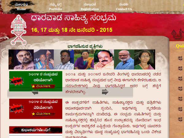 ಧಾರವಾಡ ಸಾಹಿತ್ಯ ಸಂಭ್ರಮ ಟ್ರಸ್ಟ್ 2015ರ 'ಧಾರವಾಡ ಸಾಹಿತ್ಯ ಸಂಭ್ರಮ'ದ ಬಗ್ಗೆ ಮಾಹಿತಿ ನೀಡಿದ್ದು, ಜನವರಿ 16,17 ಮತ್ತು 18ರಂದು ಈ ಬಾರಿಯ ಕಾರ್ಯಕ್ರಮಗಳು ನಡೆಯಲಿವೆ ಎಂದು ತಿಳಿಸಿದೆ. ಧಾರವಾಡದ ಕರ್ನಾಟಕ ವಿಶ್ವವಿದ್ಯಾಲಯದ ಸುವರ್ಣ ಮಹೋತ್ಸವ ಭವನದಲ್ಲಿ ಕಾರ್ಯಕ್ರಮಗಳನ್ನು ಆಯೋಜಿಸಲಾಗಿದೆ.
