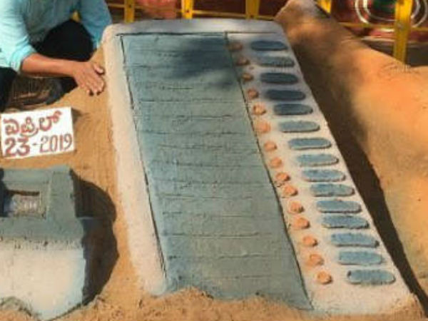 ಧಾರವಾಡ : ಮರಳಲ್ಲಿ ಮೂಡಿತು ಮಾದರಿ ಮತಯಂತ್ರ