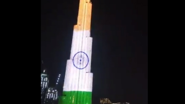ಸ್ವಾತಂತ್ರ್ಯ ದಿನಾಚರಣೆಯಂದು ದುಬೈನ ಬುರ್ಜ್ ಖಲೀಫಾದಲ್ಲಿ ವಿದ್ಯುತ್ ದೀಪಗಳಿಂದ ಭಾರತದ ತ್ರಿವರ್ಣ ಧ್ವಜವನ್ನು ಮೂಡಿಸಲಾಗಿದೆ. ರಾತ್ರಿ 8.45ಕ್ಕೆ ತ್ರಿವರ್ಣ ಧ್ವಜ ಮೂಡಿಸುವ ಮೂಲಕ ಭಾರತೀಯರಿಗೆ ಗೌರವ ಸಲ್ಲಿಸಲಾಗಿದೆ.