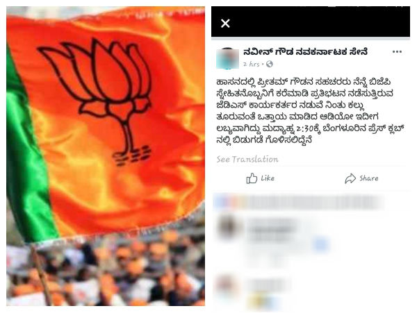 ಬಿಜೆಪಿಯ ಕಾರ್ಯಕರ್ತರೇ ಕಲ್ಲೆಸೆತ ಪ್ರಕರಣದ ಹಿಂದೆ ಇದ್ದಾರೆ, ಪ್ರೀತಂಗೌಡ ಸಹಚರ ಒಬ್ಬರು ಬಿಜೆಪಿ ಕಾರ್ಯಕರ್ತರಿಗೆ ಕರೆ ಮಾಡಿ ಕಲ್ಲೆಸೆಯುವಂತೆ ಒತ್ತಾಯ ಮಾಡಿದ ಫೋನ್ ಸಂಭಾಷಣೆಯನ್ನು ಇಂದು ಬಿಡುಗಡೆ ಮಾಡುತ್ತೇನೆ ಎಂದು ಹಾಸನದ ವ್ಯಕ್ತಿಯೊಬ್ಬ ಫೇಸ್ಬುಕ್ನಲ್ಲಿ ಬರೆದುಕೊಂಡಿರುವುದು ಚರ್ಚೆಗೆ ಕಾರಣವಾಗಿದೆ.
