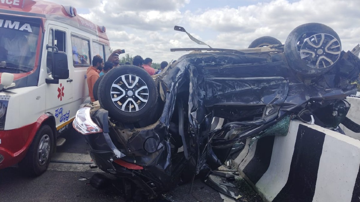 ಆದಿಚುಂಚನಗಿರಿ ದೇವಾಲಯಕ್ಕೆ ಹೋಗಿ ವಾಪಸ್ಸು ಬರುತ್ತಿದ್ದ ವೇಳೆ ವೇಗವಾಗಿ ಬಂದ ಕಾರು ಚಾಲಕನ ನಿಯಂತ್ರಣ ತಪ್ಪಿ ನಾಲ್ಕೈದು ಬಾರಿ ಪಲ್ಟಿಯಾಗಿ ಮೇಲ್ಸೇತುವೆಯ ತಡೆಗೋಡೆಗೆ ಡಿಕ್ಕಿಯಾಗಿದೆ. ಕಾರು ಸಂಪೂರ್ಣ ಜಖಂಗೊಂಡಿದ್ದು, ಮೇಲ್ಸುತುವೆಯಿಂದ ಕೆಳಕ್ಕೆ ಬೀಳುವಂತೆ ಜೋತು ಬಿದ್ದಿದೆ.