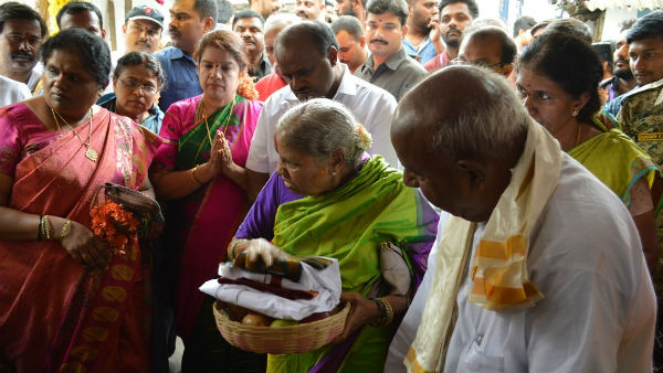 ಮಂಗಳವಾರ ಎಚ್.ಡಿ. ದೇವೆಗೌಡ ಪತ್ನಿ ಚನ್ನಾಂಬಿಕ, ಪುತ್ರ ಎಚ್.ಡಿ. ಕುಮಾರಸ್ವಾಮಿ, ಸೊಸೆ ಅನಿತಾ ಕುಮಾರಸ್ವಾಮಿ, ಮೊಮ್ಮಗ ನಿಖಿಲ್ ಕುಮಾರಸ್ವಾಮಿ ಜೊತೆ ಹಾಸನಾಂಬ ಮತ್ತು ಸಿದ್ದೇಶ್ವರ ದೇವಿಯ ದರ್ಶನ ಪಡೆದರು.