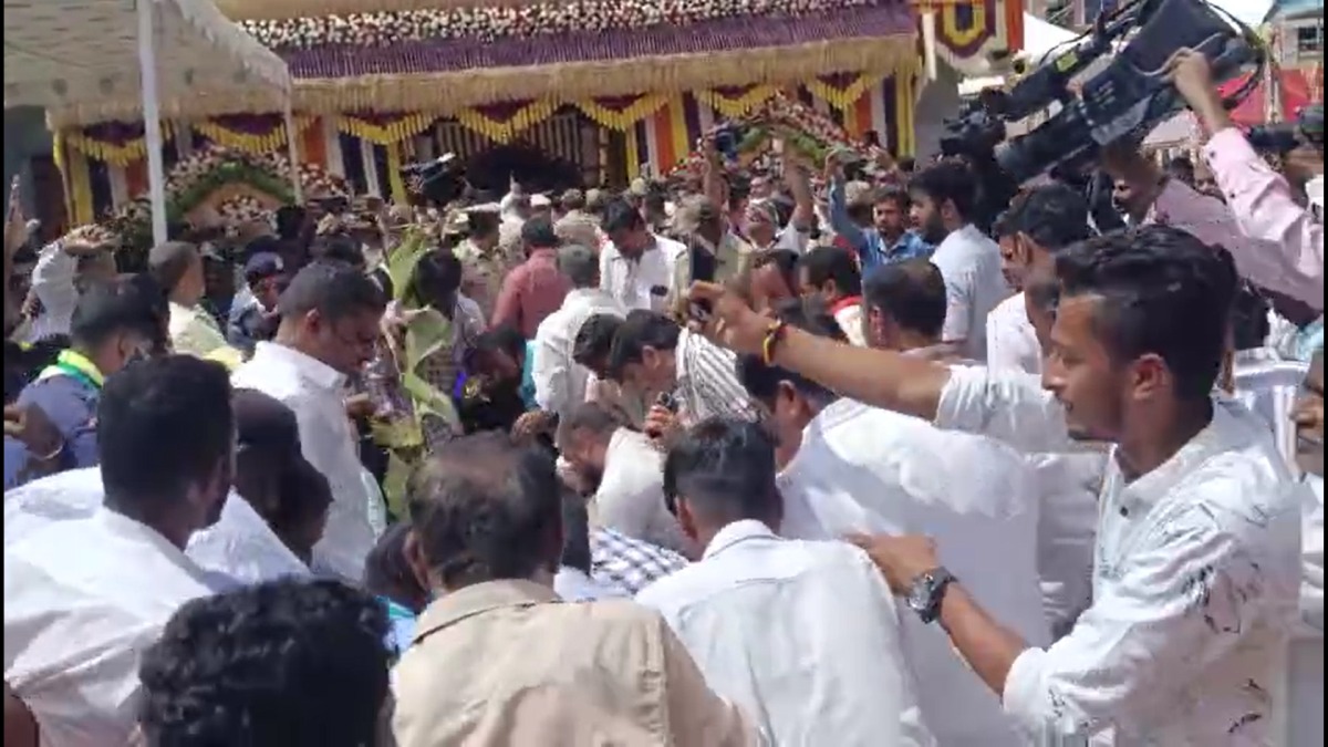 ಇಂದೇ ಹಾಸನಾಂಬ ದರ್ಶನಕ್ಕೆ ಅವಕಾಶ ನೀಡಬೇಕು ಎಂದು ಪಟ್ಟುಹಿಡಿದ ಕಾಂಗ್ರೆಸ್ ಕಾರ್ಯಕರ್ತರನ್ನು ನಿಯಂತ್ರಿಸಲು ಪೊಲೀಸರು ಹರಸಾಹಸ ಪಟ್ಟಿದ್ದಾರೆ. ಅಷ್ಟೇ ಅಲ್ಲದೆ ಬಳಿಕ ಕಾಂಗ್ರೆಸ್ ಕಾರ್ಯಕರ್ತರು ಪೊಲೀಸರನ್ನೇ ತಳ್ಳಿ ಒಳ ನುಗ್ಗಿ ದರ್ಶನಕ್ಕೆ ಹೋಗಿದ್ದಾರೆ. ಇನ್ನು ಪೊಲೀಸರು ಪರಿಸ್ಥಿತಿ ನಿಯಂತ್ರಿಸಲಾಗದೆ ಸುಮ್ಮನೆ ಹಿಂದೆ ಸರಿದ ಘಟನೆ ಜರುಗಿದೆ.