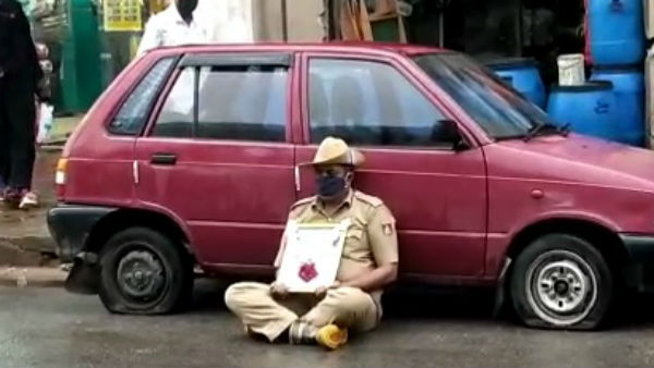 ಸಕಲೇಶಪುರದಲ್ಲಿ ನಡುಬೀದಿಯಲ್ಲೇ ಧರಣಿ ಕುಳಿತ ಕಾನ್ ಸ್ಟೆಬಲ್