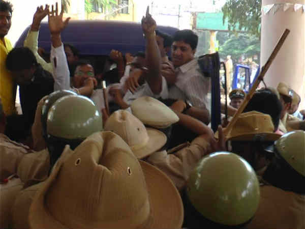ಪರಿಸ್ಥಿತಿ ಉದ್ವಿಗ್ನಗೊಳ್ಳುತ್ತಿದ್ದಂತೆಯೇ ಪೊಲೀಸರು ಕೆಲ ಪ್ರತಿಭಟನಾಕಾರರನ್ನು ಬಂಧಿಸಿದರು.