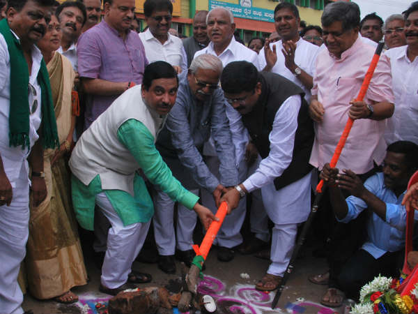 ಇಲ್ಲಿನ ಬಂಕಾಪುರ ಚೌಕದಿಂದ ಕಿತ್ತೂರು ರಾಣಿ ಚೆನ್ನಮ್ಮ ವೃತ್ತದ ವರೆಗಿನ ರಸ್ತೆ ಅಗಲೀಕರಣ ಹಾಗೂ ಅಭಿವೃದ್ಧಿ ಕಾಮಗಾರಿಗೆ ಶನಿವಾರ ಕೇಂದ್ರ ಸಚಿವ ಧರ್ಮೇಂದ್ರ ಪ್ರಧಾನ್ ಭೂಮಿಪೂಜೆ ನೆರವೇರಿಸಿದರೆ, ಭಾನುವಾರ ಅದೇ ಕಾಮಗಾರಿಗೆ ಕಾಂಗ್ರೆಸ್ ಮುಖಂಡರು ಹಾಗೂ ಕಾರ್ಯಕರ್ತರೊಂದಿಗೆ ಶಾಸಕ ಪ್ರಸಾದ್ ಅಬ್ಬಯ್ಯ ಪುನಃ ಭೂಮಿಪೂಜೆ ನೆರವೇರಿಸಿದರು.