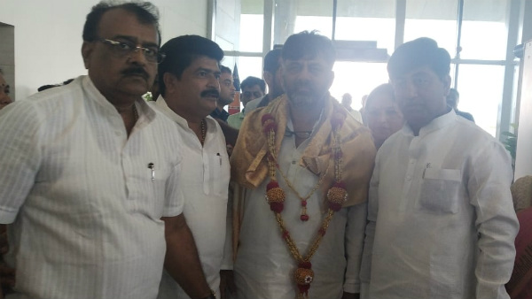 ಹುಬ್ಬಳ್ಳಿ, ನವೆಂಬರ್ 21: ಜೈಲಿನಿಂದ ಬಿಡುಗಡೆಗೊಂಡ ನಂತರ ಮೊದಲ ಬಾರಿಗೆ ನಗರಕ್ಕೆ ಆಗಮಿಸುತ್ತಿರುವ ಕಾಂಗ್ರೆಸ್ ಮುಖಂಡ, ಟ್ರಬಲ್ ಶೂಟರ್ ಎಂದೇ ಖ್ಯಾತರಾದ ಡಿ.ಕೆ.ಶಿವಕುಮಾರ್ ಅವರನ್ನು ಇಂದು ಕಾಂಗ್ರೆಸ್ ಕಾರ್ಯಕರ್ತರು, ಅಭಿಮಾನಿಗಳು ಬೃಹತ್ ಸೇಬು ಹಣ್ಣಿನ ಮಾಲೆ ಹಾಕುವ ಮೂಲಕ ಅದ್ಧೂರಿಯಾಗಿ ಸ್ವಾಗತಿಸಿದರು.