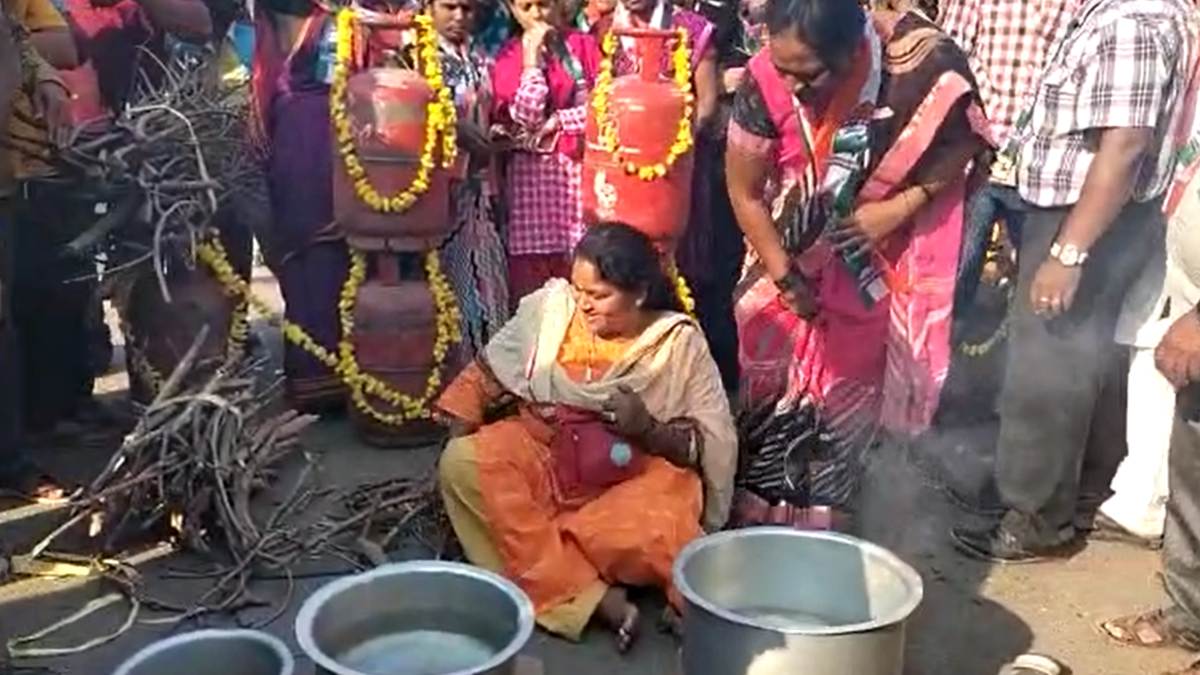 ಮೊದಲೆಲ್ಲ 400 ರೂಪಾಯಿಗೆ ಸಿಗುತ್ತಿದ್ದ ಗ್ಯಾಸ್ ಇದೀಗ 1200 ರೂಪಾಯಿ ತಲುಪಿದೆ. ಈ ಹಿನ್ನೆಲೆಯಲ್ಲಿ ನೂರಾರು ಮಹಿಳೆಯರು ಸರ್ವೋದಯ ಸರ್ಕಲ್ನಲ್ಲಿ ಗ್ಯಾಸ್ ಸಿಲಿಂಡರ್ಗಳಿಗೆ ಪೂಜೆ ಮಾಡಿ ಕಟ್ಟಿಗೆಯ ಮುಖಾಂತರ ನಡು ರಸ್ತೆಯಲ್ಲಿಯೇ ಅಡುಗೆ ಮಾಡಿದರು. ಈ ಮೂಲಕ ಕೇಂದ್ರ ಹಾಗೂ ರಾಜ್ಯ ಸರ್ಕಾರದ ವಿರುದ್ಧ ತಮ್ಮ ಆಕ್ರೋಶವನ್ನು ಹೊರಹಾಕಿದರು.