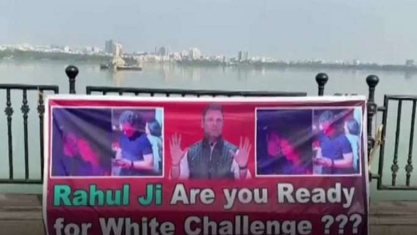 ತೆಲಂಗಾಣಕ್ಕೆ ರಾಹುಲ್ ಭೇಟಿ: ಡ್ರಗ್ ಪರೀಕ್ಷೆಗೆ ಸವಾಲು ಹಾಕುವ ಬ್ಯಾನರ್ನಿಂದ ಸ್ವಾಗತ