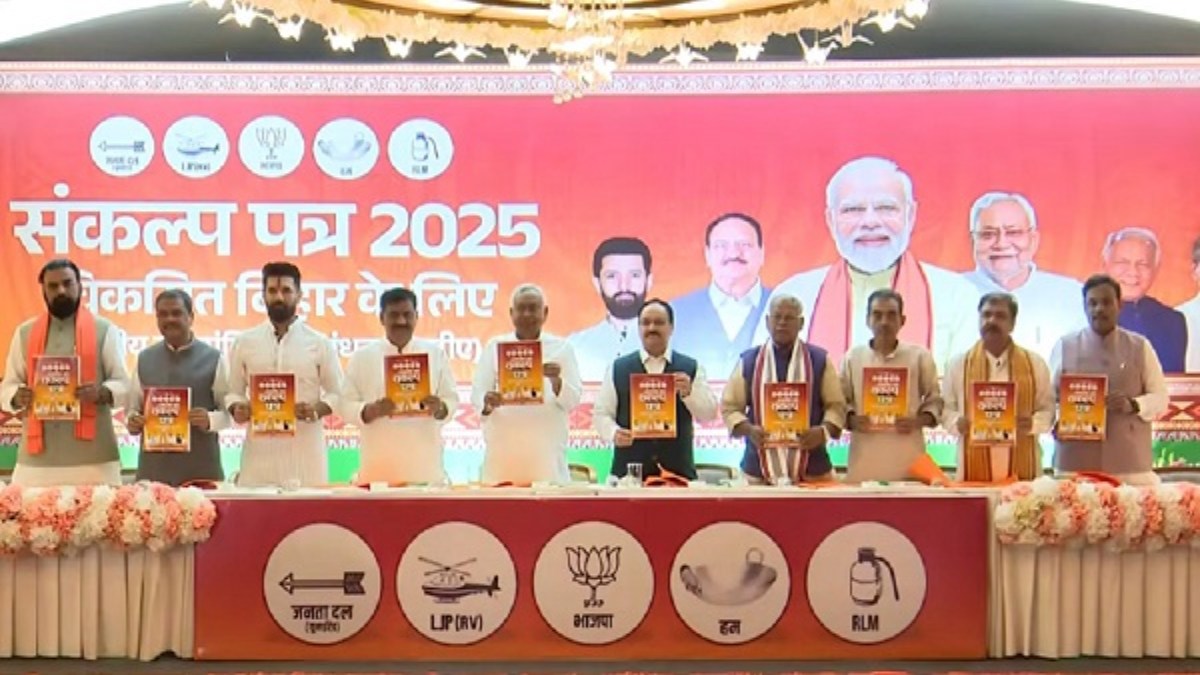 ಇಂದು ಬಿಜೆಪಿ ರಾಷ್ಟ್ರಧ್ಯಕ್ಷರಾದ ಜೆ ಪಿ ನಡ್ಡಾ ಅವರು ಪ್ರಣಾಳಿಕೆ ಬಿಡುಗಡೆ ಮಾಡಿದ್ದಾರೆ. ಎನ್ಡಿಎ ಪ್ರಣಾಳಿಕೆಯಲ್ಲಿ ಸರ್ಕಾರಿ ನೌಕರರ ನೇಮಕ, ಉಚಿತ ವಿದ್ಯುತ್, ನಾಲ್ಕು ನಗರಗಳಿಗೆ ಮೆಟ್ರೋ ವಿಸ್ತರಣೆ ಸೇರಿ ಹಲವು ಭರವಸೆಗಳನ್ನು ನೀಡಿದೆ. ಒಂದು ಕೋಟಿ ಸರ್ಕಾರಿ ನೌಕರರನ್ನು ನೇಮಕ ಮಾಡುವುದಾಗಿ ಭರವಸೆ ನೀಡಿದ್ದಾರೆ. ಮುಖ್ಯಮಂತ್ರಿ ಮಹಿಳಾ ರೋಜಗಾರ್ ಯೋಜನೆ ಜಾರಿಗೊಳಿಸಲಾಗುತ್ತದೆ. ಈ ಯೋಜನೆಯಡಿ ಮಹಿಳೆಯರಿಗೆ 2 ಲಕ್ಷದವರೆಗೆ ಸಹಾಯ ಮಾಡಲಾಗುತ್ತದೆ. ಅತಿ ಹಿಂದುಳಿದ ವರ್ಗದವರಿಗೆ 10 ಲಕ್ಷದವರೆಗೆ ಹಣ ಸಹಾಯ ಮಾಡಲಾಗುತ್ತದೆ. 1 ಕೋಟಿ ಮಹಿಳೆಯರನ್ನು ಲಖ್ಪತಿ ದೀದಿಯನ್ನಾಗಿ ಮಾಡುತ್ತೇವೆಂದು ಭರವಸೆ ನೀಡಿದ್ದಾರೆ.
