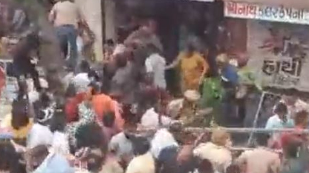 VIDEO | Eight people were injured after the balcony of a two-storeyed building collapsed during the Lord Jagannath Rath Yatra in Dariyapur area of Ahmedabad. pic.twitter.com/7QEE2RZliK