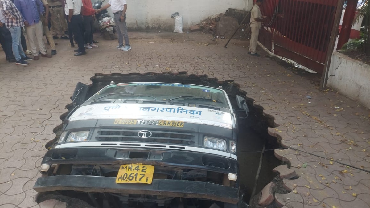 ಇನ್ನು ಇದ್ದಕ್ಕಿದ್ದಂತೆ ಅಂಚೆ ಕಚೇರಿಯ ಆವರಣದಲ್ಲಿ ಬೃಹತ್ ಗುಂಡಿ ಬಿದ್ದಿದ್ದು, ಈ ವೇಳೆ ಅಲ್ಲಿದ್ದ ಈ ವಾಹನವು ಹಿಮ್ಮುಖವಾಗಿ ಚಲಿಸಿ, ನೇರವಾಗಿ ಗುಂಡಿಯೊಳಗೆ ಬಿದ್ದಿದೆ. ಈ ಟ್ರಕ್ ಪುಣೆ ಮುನ್ಸಿಪಲ್ ಕಾರ್ಪೊರೇಷನ್ಗೆ ಸೇರಿದ್ದು ಎನ್ನಲಾಗಿದ್ದು, ಒಳಚರಂಡಿ ಸ್ವಚ್ಛತಾ ಕಾರ್ಯಕ್ಕಾಗಿ ಅಲ್ಲಿಗೆ ಬಂದಿತ್ತು..