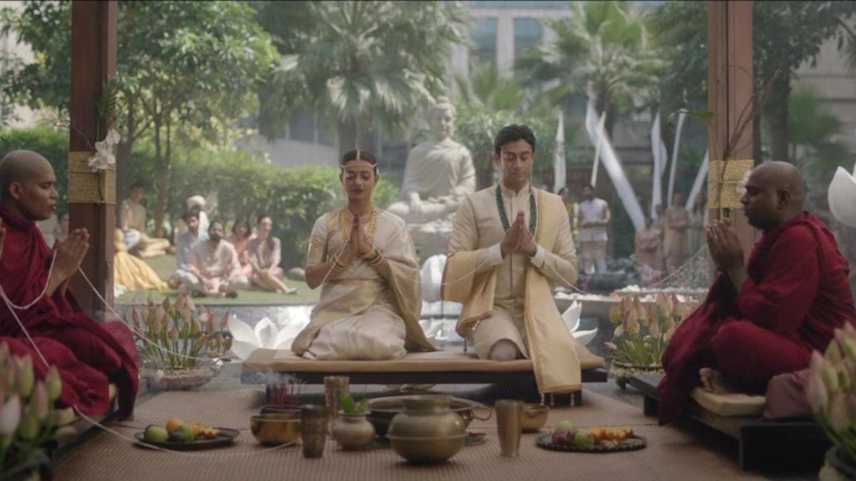 ಮೇಲ್ಜಾತಿಯ ವರನ ಕುಟುಂಬದ ಸಾಂಪ್ರದಾಯಿಕ ಕಲ್ಪನೆಗಳನ್ನು ತಿರಸ್ಕರಿಕರಿಸಿದ ನಂತರ ಪಲ್ಲವಿ ಅಂತಿಮವಾಗಿ ಅವಳು ಬಯಸಿದಂತೆ ಮದುವೆ ಮಾಡಿಕೊಂಡಿದ್ದಾಳೆ. ಬೌದ್ಧ ಬಿಕ್ಕುಗಳ ಸಮ್ಮುಖದಲ್ಲಿ ನಡೆಯುವ ಆಚರಣೆಗಳಲ್ಲಿ ಇಬ್ಬರೂ ಪಾಲ್ಗೊಳ್ಳುವ ಮೊದಲು ಅವಳು ಬಿಳಿ ಮತ್ತು ಚಿನ್ನದ ಲೇಪನದ ಸೀರೆಯನ್ನು ಧರಿಸುತ್ತಾಳೆ ಮತ್ತು ನೀರಿನ ಕೊಳಗಳ ಮೂಲಕ ತನ್ನ ವರನ ಬಳಿಗೆ ಹೋಗುತ್ತಾಳೆ. ಭಗವಾನ್ ಬುದ್ಧನ ಭಾವಚಿತ್ರದ ಪಕ್ಕದಲ್ಲಿ ಇರಿಸಲಾಗಿದ್ದ ದಲಿತ ನಾಯಕ ದಿವಂಗತ ಭೀಮರಾವ್ ರಾಮ್ಜಿ ಅಂಬೇಡ್ಕರ್ ಅವರ ಫೋಟೋಕ್ಕೂ ಅವರು ಪ್ರಾರ್ಥಿಸಿಸುತ್ತಾರೆ.