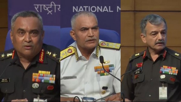 #WATCH | Defence Minister Rajnath Singh and the three service chiefs hold a press conference, in Delhi https://t.co/QTd2nIXnNk