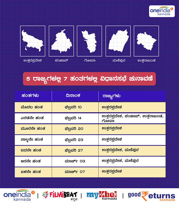 ಉತ್ತರ ಪ್ರದೇಶ (403), ಗೋವಾ (40), ಪಂಜಾಬ್ (117), ಉತ್ತರಾಖಂಡ (70), ಮಣಿಪುರ (60) ರಾಜ್ಯಗಳ ವಿಧಾನಸಭೆ ಚುನಾವಣೆ ಫೆಬ್ರವರಿ ಅಂತ್ಯ ಅಥವಾ ಮಾರ್ಚ್ ತಿಂಗಳಿನಲ್ಲಿ ನಡೆಯಬೇಕಿದೆ.