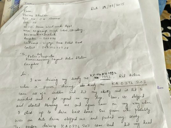 ನಮಗೆ ಹಲ್ಲೆ ಮಾಡಿದ ಆಟೋ ಚಾಲಕನ ಬಗ್ಗೆ ಹೇಳಿದರೆ ಆತ ಸೆಂಟ್ರಲ್ ಜೈಲಿನಲ್ಲಿದ್ದಾನೆ ಎಂಬ ಉತ್ತರ ನೀಡಿದರು. ಅಪಘಾತ ಮಾಡಿದ ವಾಹನದ ಸಂಖ್ಯೆಯೇ ಸರಿ ಇಲ್ಲ ಎಂದು ಪೊಲೀಸರು ವಾದಿಸತೊಡಗಿದರು.