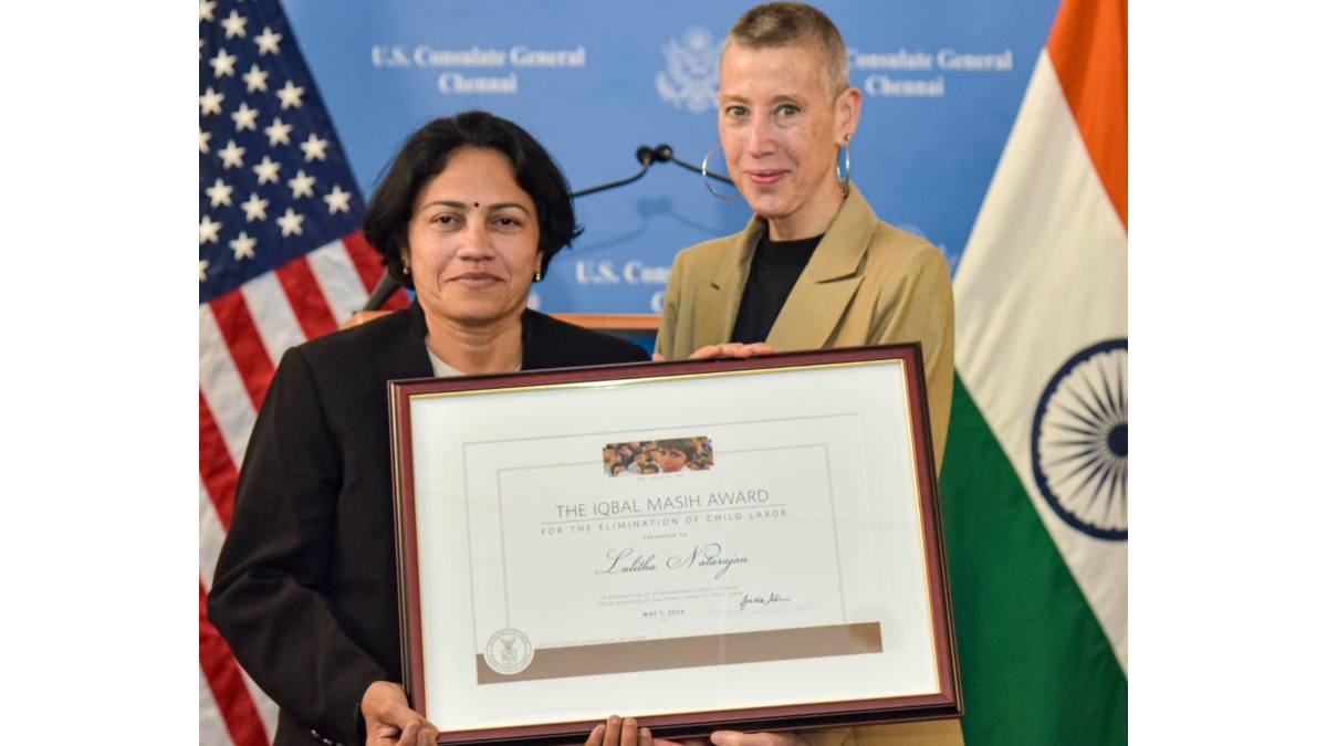 ಚೆನ್ನೈ, ಜೂನ್ 13: ಯುನೈಟೆಡ್ ಸ್ಟೇಟ್ಸ್ ಡಿಪಾರ್ಟ್ ಮೆಂಟ್ ಆಫ್ ಲೇಬರ್ ಬಾಲ ಕಾರ್ಮಿಕ ಪದ್ಧತಿಯ ನಿರ್ಮೂಲನೆಗೆ ನಡೆಸಿದ ಪ್ರಯತ್ನಗಳಿಗಾಗಿ ನೀಡುವ 2023ನೇ ಸಾಲಿನ ಇಕ್ಬಾಲ್ ಮಸಿ ಪುರಸ್ಕಾರಕ್ಕೆ ಚೆನ್ನೈನ ಲಲಿತಾ ನಟರಾಜನ್ ಭಾಜನರಾಗಿದ್ದಾರೆ. ಯು.ಎಸ್ ಕಾನ್ಸಲ್ ಜನರಲ್ ಜುಡಿತ್ ರೇವಿನ್ ಈ ಪ್ರಶಸ್ತಿಯನ್ನು ಚೆನ್ನೈನ ಯು.ಎಸ್. ಕಾನ್ಸಲೇಟ್ ಜನರಲ್ನಲ್ಲಿ ನಡೆದ ಸಮಾರಂಭದಲ್ಲಿ ಲಲಿತಾ ನಟರಾಜನ್ ಅವರಿಗೆ ಪ್ರದಾನ ಮಾಡಿದರು.