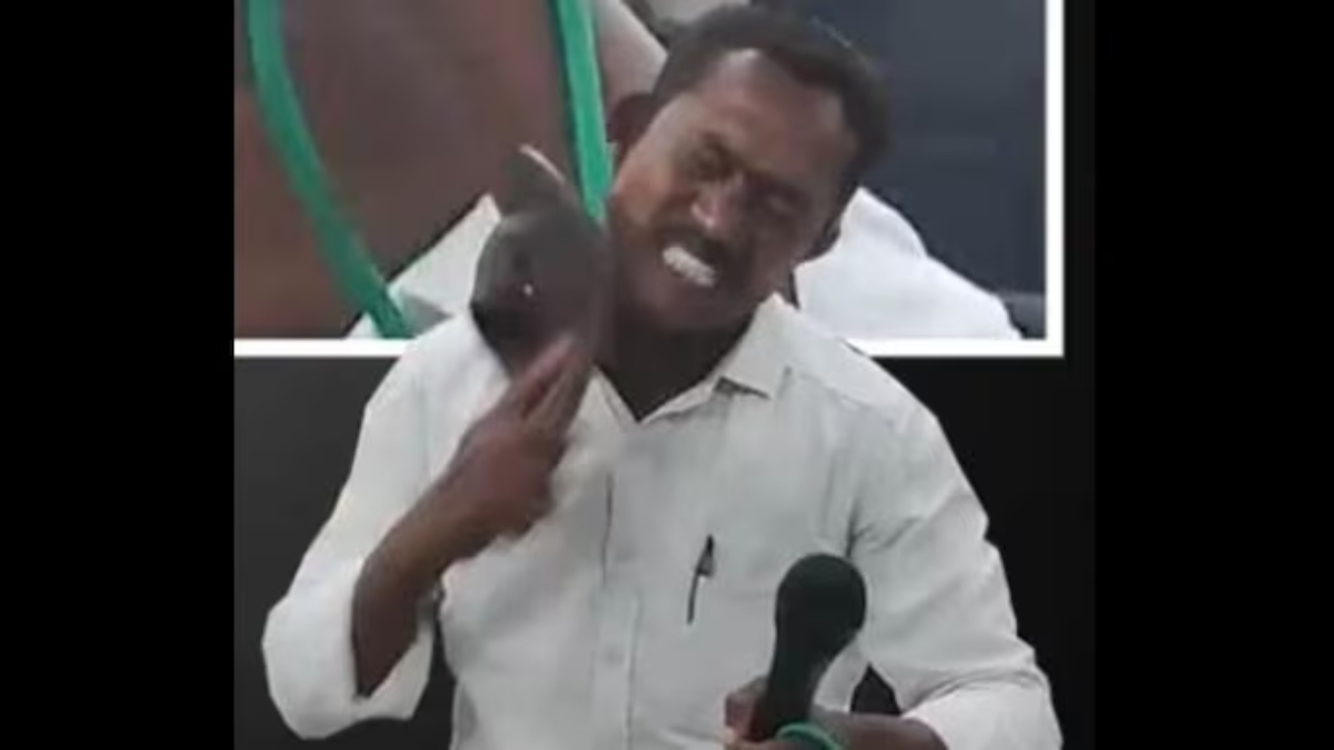ಆಂಧ್ರ ಕೌನ್ಸಿಲರ್ ಸಭೆಯಲ್ಲಿ ಚಪ್ಪಲಿಯಿಂದ ಕಪಾಳಮೋಕ್ಷ ಮಾಡಿಕೊಂಡ ಕೌನ್ಸಿಲರ್!