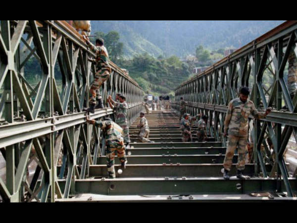 ಸಂತ್ರಸ್ತರ ರಕ್ಷಣೆಗೆ ರಾಜೌರಿ ಪ್ರಾಂತ್ಯದ ಬಳಿ ಕೃತಕ ಸೇತುವೆ ನಿರ್ಮಾಣದಲ್ಲಿ ನಿರತವಾಗಿರುವ ಸೇನೆ.