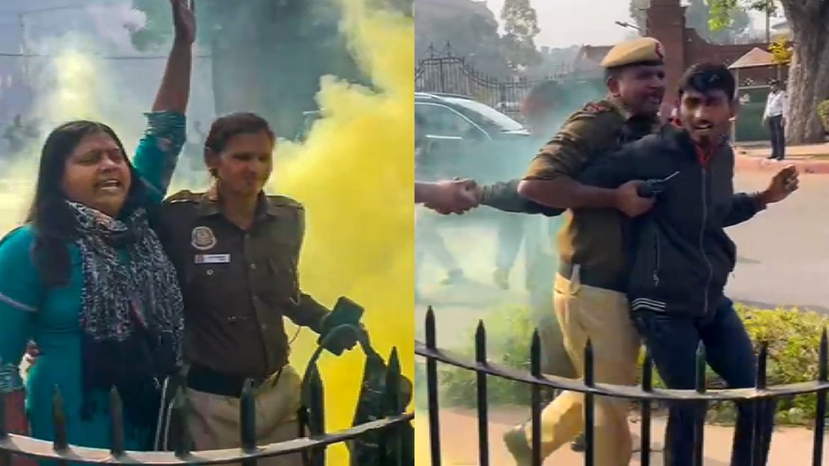 ಇಬ್ಬರು ವ್ಯಕ್ತಿಗಳು ಲೋಕಸಭೆಗೆ ಪ್ರವೇಶಿಸಿ ಡಬ್ಬಿಗಳಿಂದ ದಟ್ಟವಾದ ಹಳದಿ ಹೊಗೆಯನ್ನು ಹೊರಹಾಕಿದ ಭದ್ರತಾ ಉಲ್ಲಂಘನೆಗಾಗಿ ಐವರನ್ನು ಬುಧವಾರ ಬಂಧಿಸಲಾಯಿತು.