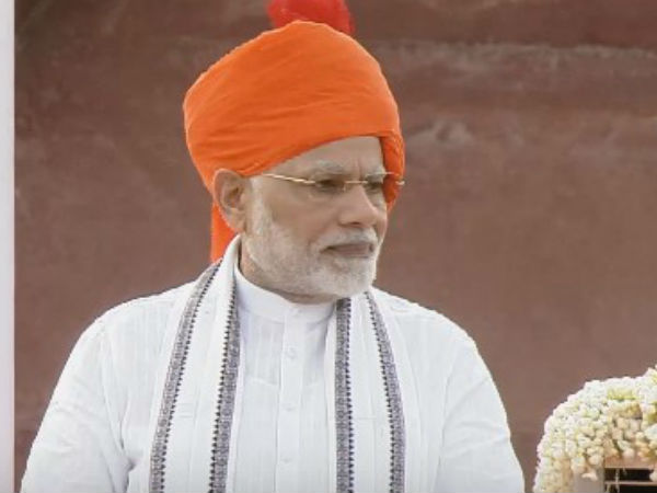 ನವದೆಹಲಿ, ಆಗಸ್ಟ್ 15: ದೇಶವನ್ನು ಉದ್ದೇಶಿಸಿ ಸ್ವಾತಂತ್ರ್ಯ ದಿನದ ಭಾಷಣ ಮಾಡಿದ ಪ್ರಧಾನ ಮಂತ್ರಿ ನರೇಂದ್ರ ಮೋದಿ ಬುಧವಾರದಂದು ತಮ್ಮ ಸಾಂಪ್ರದಾಯಿಕ ದಿರಿಸು ಧರಿಸುವ ಮೂಲಕ ಮತ್ತೊಮ್ಮೆ ಗಮನ ಸೆಳೆದರು. ತಲೆಗೆ ಕೇಸರಿ ಬಣ್ಣದ ಟರ್ಬನ್ ಸುತ್ತಿಕೊಂಡಿದ್ದ ನರೇಂದ್ರ ಮೋದಿ, ಗಮನ ಸೆಳೆದರು.