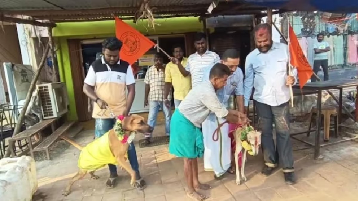 ಪ್ರೇಮಿಗಳ ದಿನಾಚರಣೆಯನ್ನು ವಿರೋಧಿಸಿ ಹಿಂದೂ ಸಂಘಟನೆಯೊಂದು ತಮಿಳುನಾಡಿನ ಶಿವಗಂಗಾದಲ್ಲಿ ನಾಯಿಗಳ ನಡುವೆ ಅಣಕು ವಿವಾಹ ಸಮಾರಂಭಗಳನ್ನು ನಡೆಸಿತು.