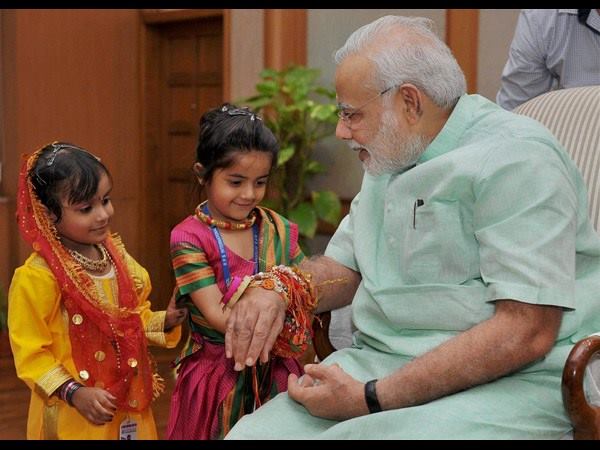 ಮಕ್ಕಳಿಂದ ರಾಖಿ ಕಟ್ಟಿಸಿಕೊಂಡ ಮೋದಿ