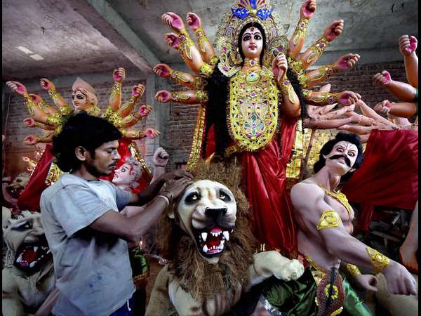 ನವದೆಹಲಿಯಲ್ಲಿ ದುರ್ಗಾಮಾತೆಯ ವಿಗ್ರಹಕ್ಕೆ ಅಂತಿಮ ಸ್ಪರ್ಶ ನೀಡುತ್ತಿರುವ ಕಲಾವಿದ. ಹಬ್ಬಕ್ಕೆ ಮುನ್ನ ವಿಗ್ರಹಗಳ ತಯಾರಿ ಮತ್ತು ಮಾರಾಟ ಭರ್ಜರಿಯಾಗೇ ನಡೆದಿತ್ತು.