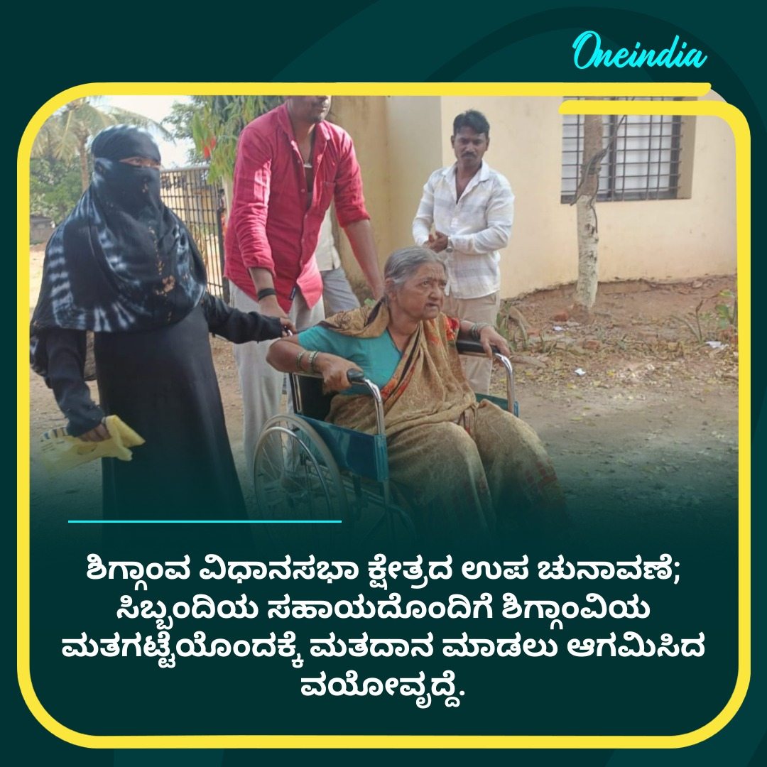 ಶಿಗ್ಗಾಂವ ವಿಧಾನಸಭಾ ಕ್ಷೇತ್ರದ ಉಪ ಚುನಾವಣೆ; ಸಿಬ್ಬಂದಿಯ ಸಹಾಯದೊಂದಿಗೆ ಶಿಗ್ಗಾಂವಿಯ ಮತಗಟ್ಟೆಯೊಂದಕ್ಕೆ ಮತದಾನ ಮಾಡಲು ಆಗಮಿಸಿದ ವಯೋವೃದ್ದೆ.