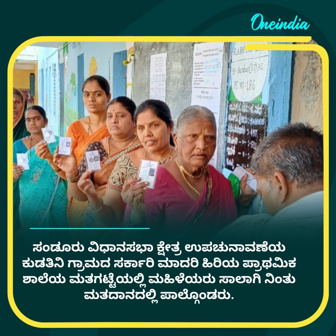 ಸಂಡೂರು ವಿಧಾನಸಭಾ ಕ್ಷೇತ್ರ ಉಪಚುನಾವಣೆಯ ಕುಡತಿನಿ ಗ್ರಾಮದ ಸರ್ಕಾರಿ ಮಾದರಿ ಹಿರಿಯ ಪ್ರಾಥಮಿಕ ಶಾಲೆಯ ಮತಗಟ್ಟೆಯಲ್ಲಿ ಮಹಿಳೆಯರು ಸಾಲಾಗಿ ನಿಂತು ಮತದಾನದಲ್ಲಿ ಪಾಲ್ಗೊಂಡರು.