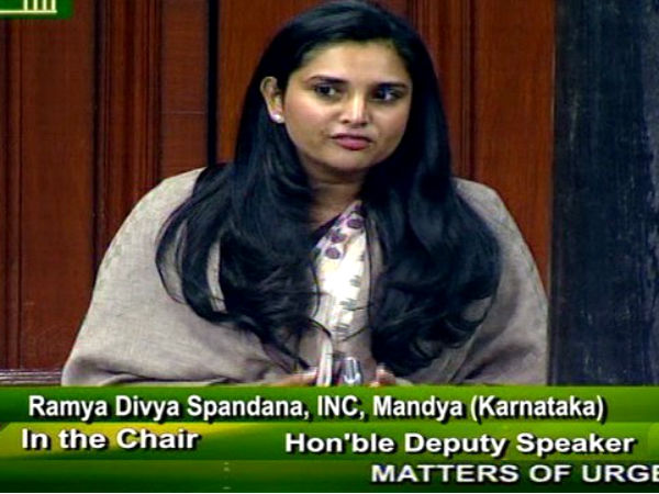 ಸಂಸತ್ತಿನಲ್ಲಿ ಮಂಡ್ಯ ಸಂಸದೆ ರಮ್ಯಾ ಪ್ರಪ್ರಥಮ ಭಾಷಣ