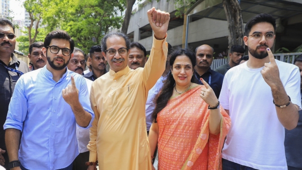 #WATCH | Maharashtra CM Eknath Shinde casts his vote at a polling booth in Thane. #LokSabhaElections2024 pic.twitter.com/RZvG01iVyY