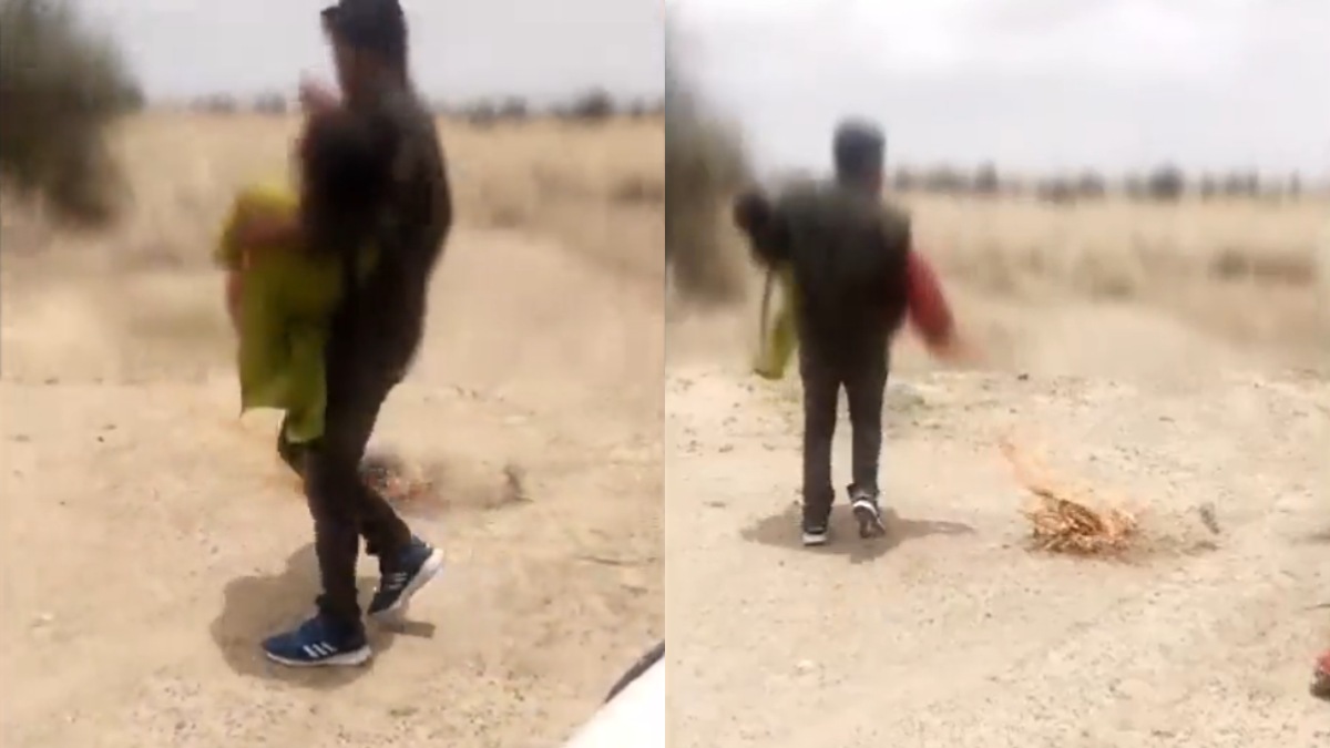 मीडिया द्वारा ये वीडियो जैसलमेर का बताया जा रहा है। रिपोर्ट्स के अनुसार एक लड़की को सरेआम किडनैप करके एक बंजर वीराने में आग जलाकर उसके साथ ज़बरदस्ती शादी कर ली। ये बेहद चौंकाने वाली और डराने वाली घटना है। @AshokGehlot51 जी मामले की जाँच कर कार्यवाही करें। pic.twitter.com/mZee4oJgSy