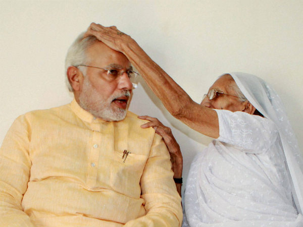 ದೆಹಲಿಗೆ ಹೊರಟ ಮೋದಿಗೆ ತಾಯಿಯ ಆಶೀರ್ವಾದ