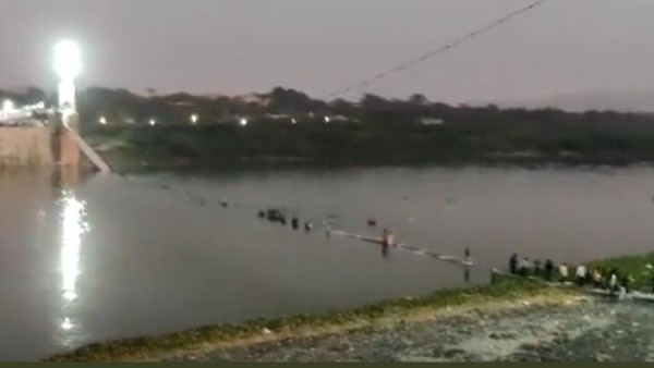 Morbi cable bridge : ಗುಜರಾತಿನ ಮೊರ್ಬಿ ತೂಗು ಸೇತುವೆ ಕುಸಿತ ಹಲವರು ನೀರುಪಾಲು ಶಂಕೆ