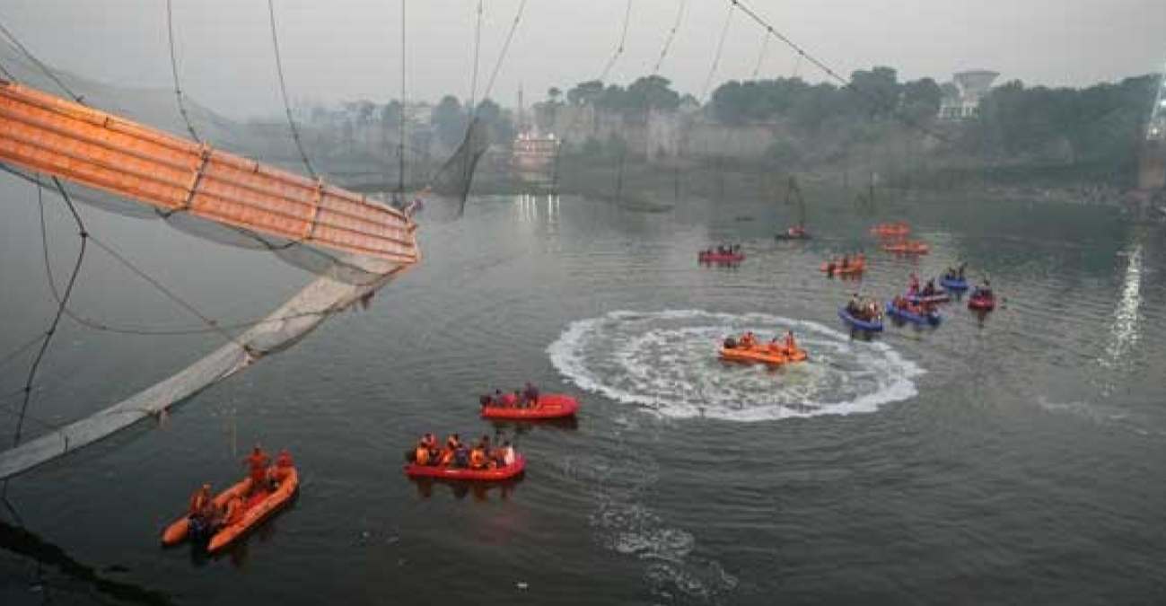 135ಕ್ಕೂ ವರ್ಷಕ್ಕೂ ಹಳೆಯದಾದ ಮೊರ್ಬಿ ಸೇತುವೆಯನ್ನು ದುರಸ್ತಿ ಕಾರ್ಯಕ್ಕೆ ಒರೆವಾ ಗ್ರೂಪ್ ಕಂಪನಿಗೆ ವಹಿಸಲಾಗಿತ್ತು. ಅಕ್ಟೋಬರ್ 26ರಂದು ಸಾರ್ವಜನಿಕ ಸಂಚಾರಕ್ಕೆ ಮುಕ್ತ ಮಾಡಲಾಗಿತ್ತು. 500ಕ್ಕೂ ಹೆಚ್ಚು ಜನರು ಸೇತುವೆ ಮೇಲೆ ಸಾಗುತ್ತಿರುವಾಗ ಈ ದುರಂತ ಸಂಭವಿಸಿದೆ. ಮೃತರಲ್ಲಿ 50 ಮಕ್ಕಳು ಮತ್ತು 40 ಮಹಿಳೆಯರೂ ಸೇರಿದ್ದಾರೆ. ಪ್ರಕರಣಕ್ಕೆ ಸಂಬಂಧಿಸಿದಂತೆ 9 ಜನರ ವಿರುದ್ಧ ದೂರ ದಾಖಲಿಸಿಕೊಳ್ಳಲಾಗಿತ್ತು. ಸೇತುವೆ ದುರಂತ ನಡೆದ ಸ್ಥಳಕ್ಕೆ ಪ್ರಧಾನಿ ಮೋದಿ ಭೇಟಿ ನೀಡಿ ಆಸ್ಪತ್ರೆಗೆ ಭೇಟಿ ನೀಡಿ ಗಾಯಾಳುಗಳಿಗೆ ಸಾಂತ್ವನ ಹೇಳಿದ್ದರು. ಜೊತೆಗೆ ದುರ್ಘಟನೆಯಲ್ಲಿ ಮೃತಪಟ್ಟ ಕುಟುಂಬಗಳಿಗೆ ತಲಾ ₹ 2 ಲಕ್ಷ ಹಾಗೂ ಗಾಯಾಳುಗಳಿಗೆ ತಲಾ ₹ 50 ಸಾವಿರ ಪರಿಹಾರವನ್ನು ಪ್ರಧಾನಿ ಘೋಷಿಸಿದ್ದಾರೆ. ದುರಂತದಲ್ಲಿ ದೊಡ್ಡ ಕೈಗಳಿವೆ ಅವುಗಳು ಬೆಳಕಿಗೆ ಬರಬೇಕಿದೆ ಎಂದು ವಿರೋಧ ಪಕ್ಷಗಳು ಹರಿಹಾಯ್ದಿವೆ.
