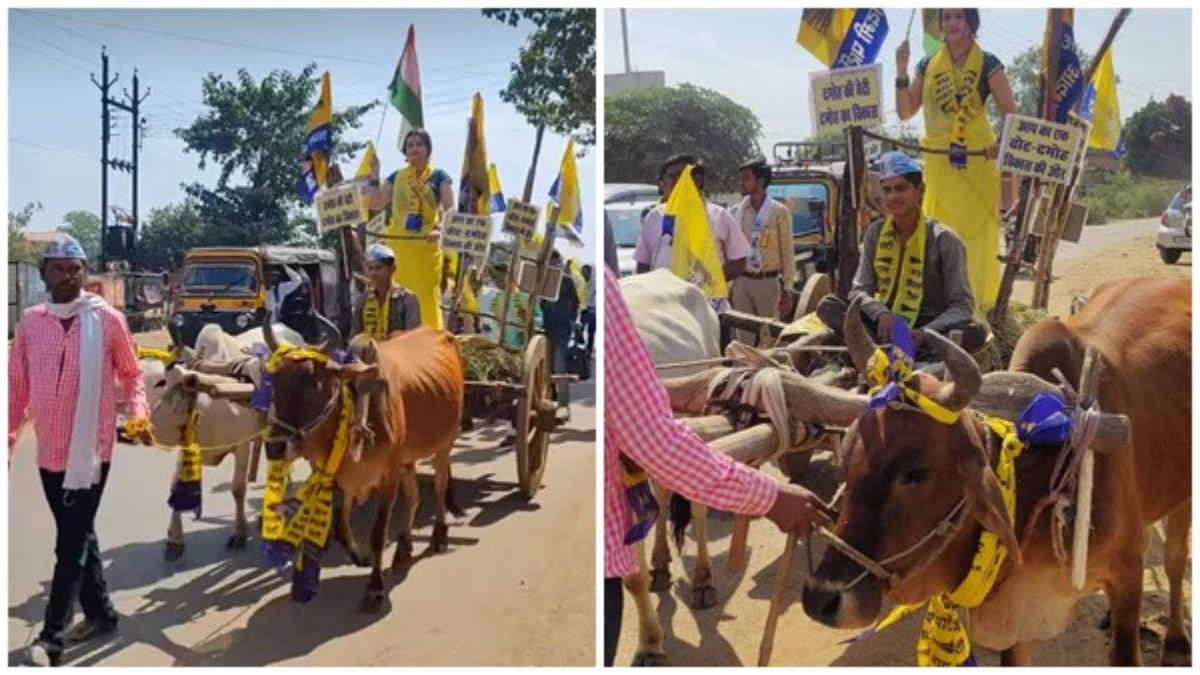 MP: ಐಷಾರಾಮಿ ಕಾರುಗಳು ಮತ್ತು ವಿಮಾನ ಬಿಟ್ಟು ಎತ್ತಿನ ಬಂಡಿಯಲ್ಲಿ ಪ್ರಯಾಣಿಸಿದ ನಟಿ ಚಾಹತ್ ಪಾಂಡೆ!