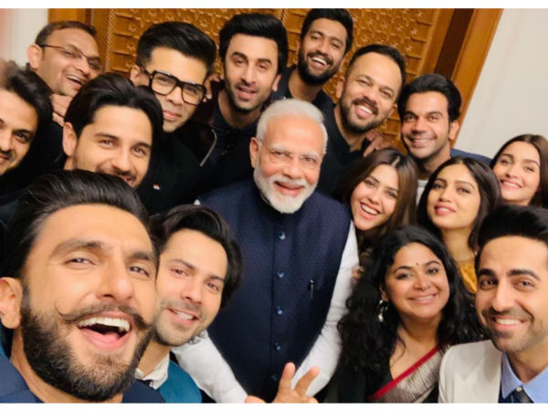 ಹೌದು, ರಣವೀರ್ ಸಿಂಗ್, ರಣಬೀರ್ ಕಪೂರ್, ವರುಣ್ ಧವನ್, ರೋಹಿತ್ ಶೆಟ್ಟಿ, ವಿಕ್ಕಿ ಕೌಶನ್, ಆಲಿಯಾ ಭಟ್, ಕರಣ್ ಜೋಹರ್ ಅಂತಹಾ ಯಂಗ್ ಆಂಡ್ ಬಿಗ್ ಸ್ಟಾರ್ಗಳ ನಡುವೆ ನಿಂತಿರುವ ಮೋದಿ ಸೆಲ್ಫಿಗೆ ಮುಖವೊಡ್ಡಿದ್ದಾರೆ, ಬಾಲಿವುಡ್ ಮಂದಿಯ ಮಧ್ಯದಲ್ಲೂ ಪ್ರಧಾನಿ ಹುದ್ದೆಯ ಗಂಭಿರ ನಗುವನ್ನೇ ಸೂಸಿದ್ದಾರೆ.