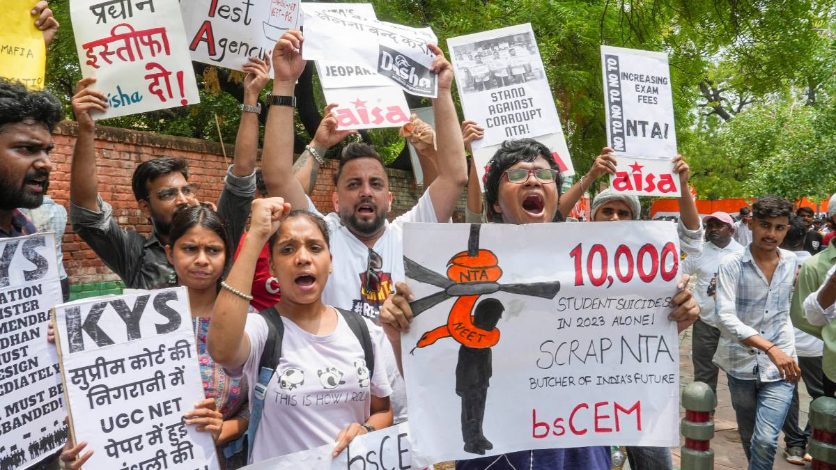ಶುಕ್ರವಾರ ಮಧ್ಯಾಹ್ನ ಕಾಂಗ್ರೆಸ್ ವಿದ್ಯಾರ್ಥಿ ಘಟಕ ಎನ್ಎಸ್ಯುಐ ನೀಟ್ ಪರೀಕ್ಷೆಯನ್ನು ನಡೆಸುತ್ತಿರುವ ಎನ್ಟಿಎ (ನ್ಯಾಷನಲ್ ಟೆಸ್ಟಿಂಗ್ ಏಜೆನ್ಸಿ) ಕಚೇರಿಗೆ ನುಗ್ಗಿ ಅದನ್ನು ಸ್ಥಗಿತಗೊಳಿಸುವಂತೆ ಒತ್ತಾಯಿಸಿತು.